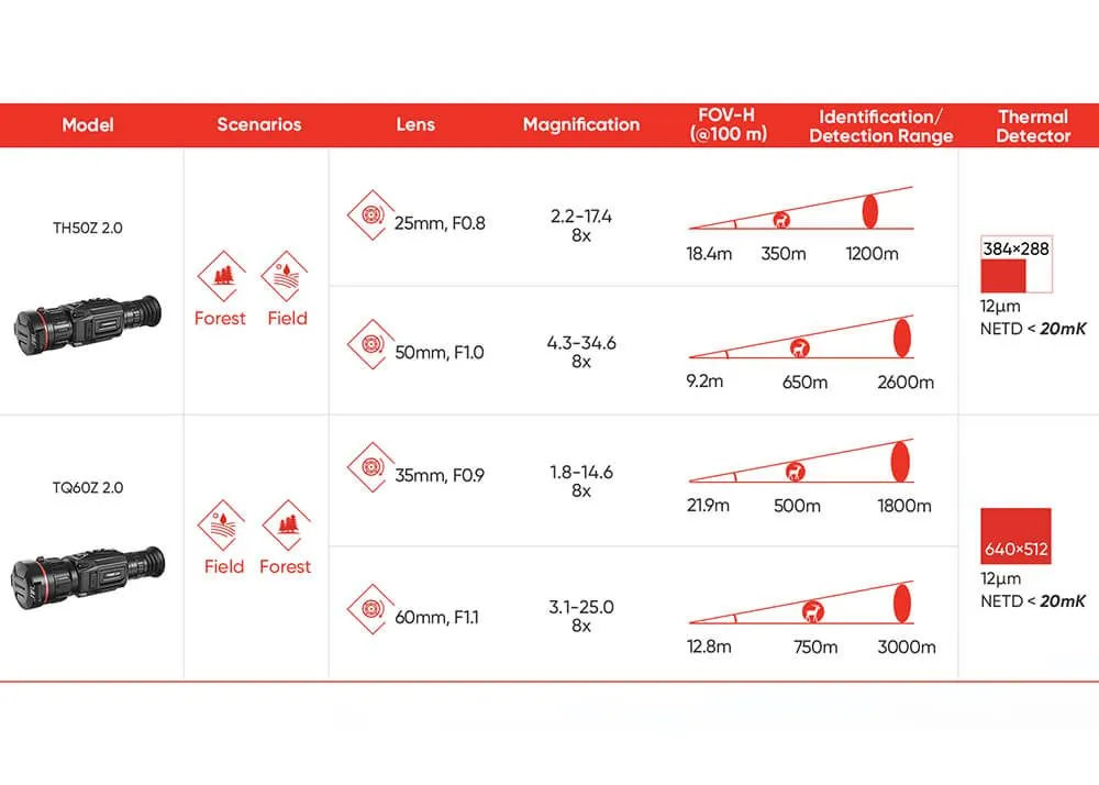 HIKMICRO Thunder Zoom TQ60Z 2.0 to celownik termowizyjny, który łączy precyzję, wszechstronność i trwałość. Sensor <20 mK, zmienna ogniskowa 35/60 mm i zasięg detekcji 3000 m czynią go niezastąpionym narzędziem dla myśliwych i strzelców. W cenie niższej niż konkurencja oferuje funkcje premium, które poprawiają skuteczność w nocy i trudnych warunkach. Niezależnie od tego, czy polujesz, strzelasz sportowo, czy potrzebujesz niezawodnego sprzętu w pracy – TQ60Z 2.0 spełni oczekiwania.