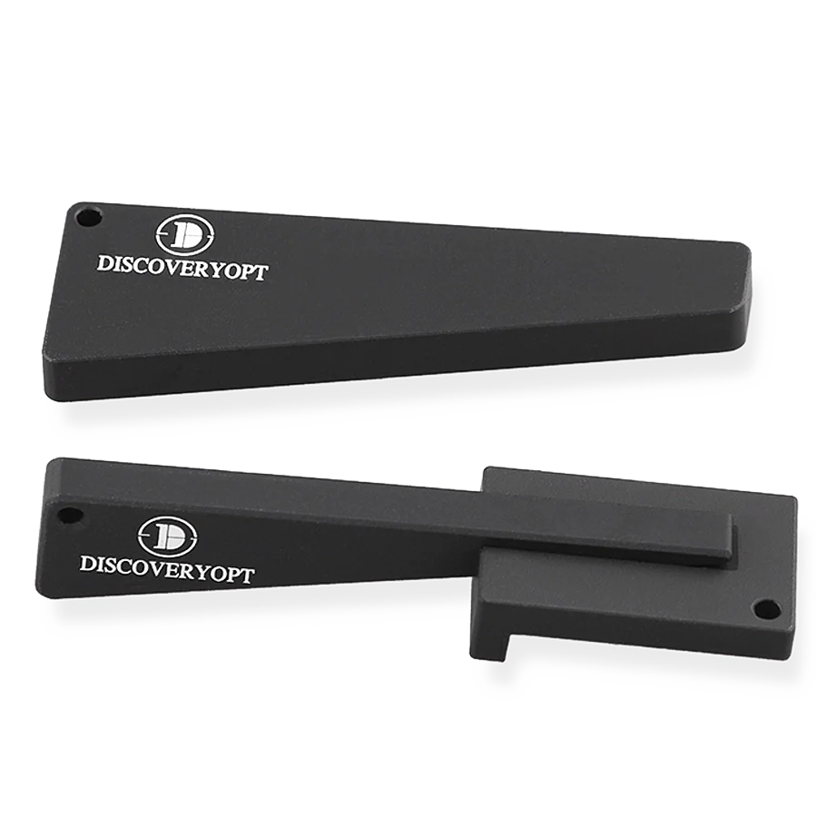 Poziomica oraz klin do ustawiania lunet Discovery Optics to zestaw ułatwiający wypoziomowanie optyki względem osi broni podczas montażu.
