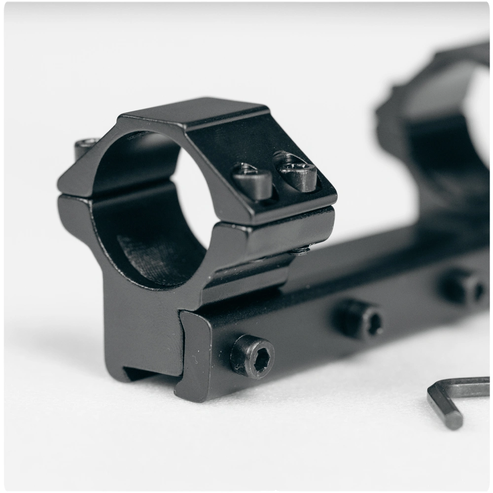 Standardowa listwa montażowa 11 mm występuje w większości wiatrówek PCP, CO₂ i sprężynowych oraz w broni sportowej kalibru .22 LR. Dzięki dwóm solidnym śrubom imbusowym baza montażowa pewnie obejmuje szynę, zapewniając trwałe połączenie.
