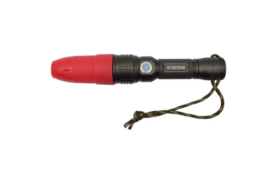 – Latarka LED o mocy 300 lumenów: Dzięki różnym trybom świecenia i kolorowym nakładkom, doskonale sprawdzi się w różnych sytuacjach.
