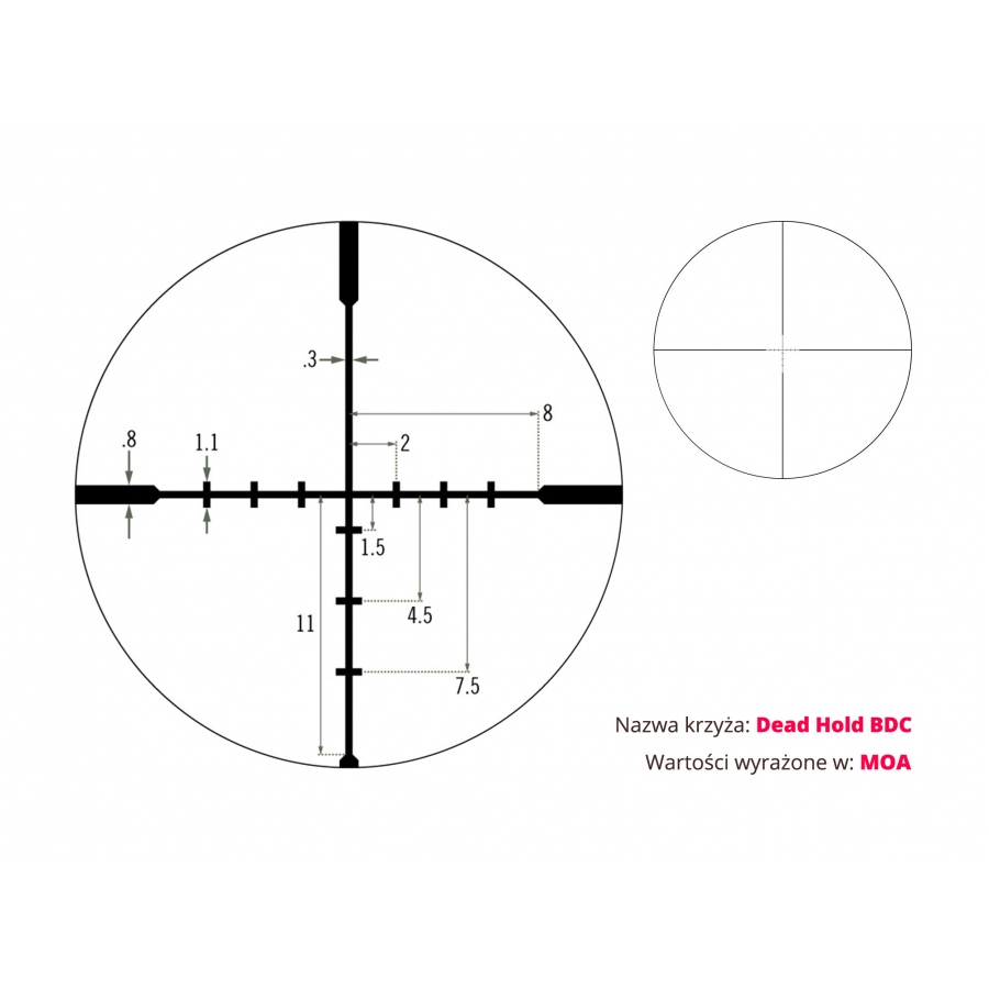 • Siatka Dead-Hold® BDC MOA ułatwiająca szybkie poprawki balistyczne.
