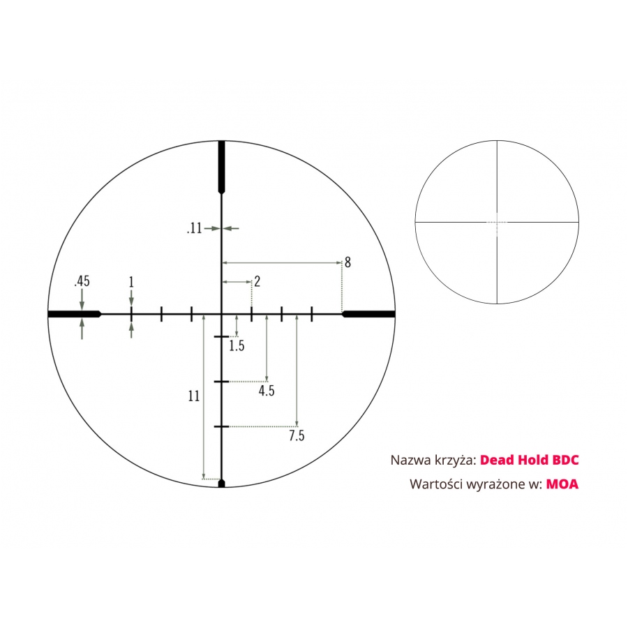 - Siatka Dead-Hold® BDC MOA ułatwia korektę opadu bez kręcenia wieżyczkami.